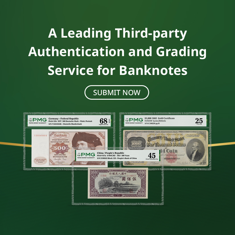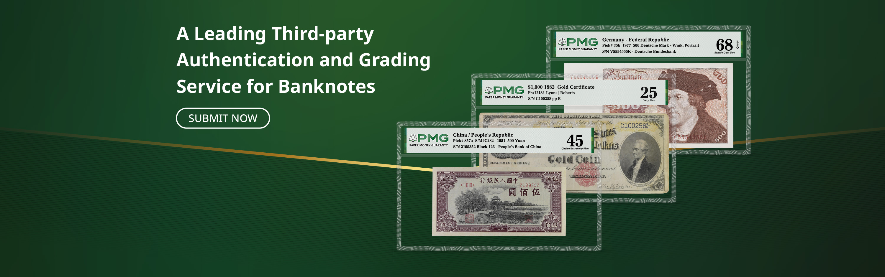 For collectors of banknotes, PMG provides an accurate, consistent and impartial assessment of authenticity and grade, backed by the comprehensive PMG Guarantee, which protects buyers and sellers. PMG is part of the Certified Collectibles Group, whose mission is to empower collectors with services that ignite passion, create value and build community.