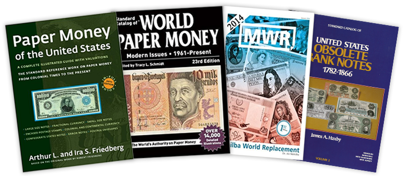 關於紙幣有很多基礎和專業的參考書。對於美國紙幣收藏家來說,Arthur L.和Ira S. Friedberg所著的《美國紙幣》(Paper Money of the United States)一書是必備的。世界紙幣收藏家則應考慮《世界紙幣標準目錄》(Standard Catalog of World Paper Money)一書。《標準目錄》 有三卷,分別是Tracy L. Schmidt編輯的普通卷,Maggie Judkins編輯的現代卷和George Cuhaj編輯的特殊卷。還有很多其他受歡迎的參考書目,PMG編製了一份列表,請點擊這裏查看,但這份列表未能盡錄的書籍還有很多。