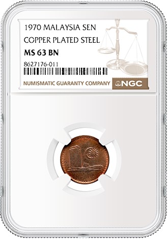 - 馬來西亞1967年50仙(非安全邊),評級等級為NGC MS 63(拍品號1101),估價為6,000至1.2萬馬來西亞林吉特(約合1,500至3,000美元)