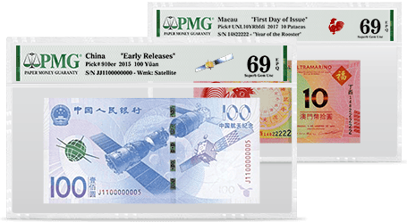 PMG特意提供專稱,例如「Early Releases」(早期發行)、「First Releases」(首期發行)、「First Day of Issue」(首日發行),加印在PMG的認證標籤上,以辨別PMG在指定時間內接收到的紙幣。